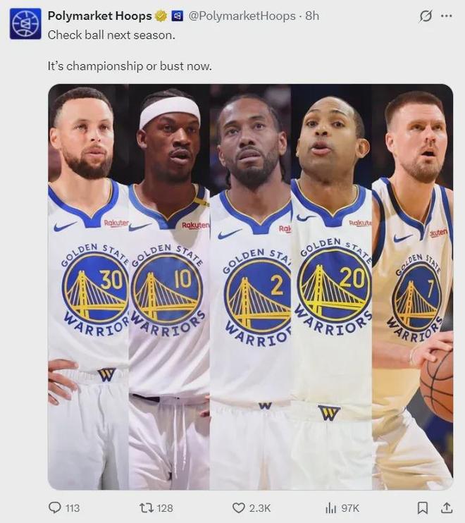 已經(jīng)有向來(lái)愛(ài)操心的美媒,曬出了勇士新的核心五人組,即庫(kù)里(38歲)+巴特勒(36歲)+倫納德(34歲)+霍福德(39歲)+波爾津吉斯(30歲),平均年齡35.4歲。